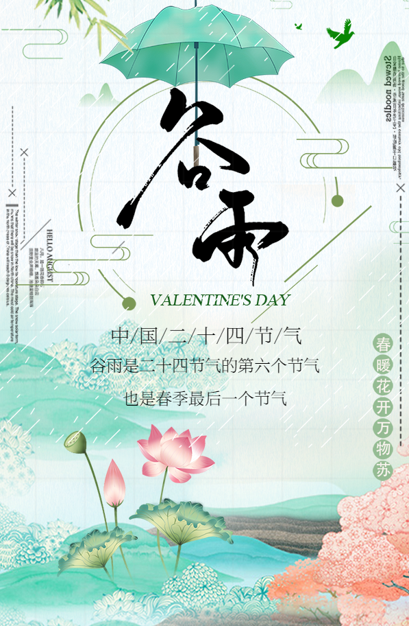 穀雨 is the time of a year when it rains and moisten grains in fields.